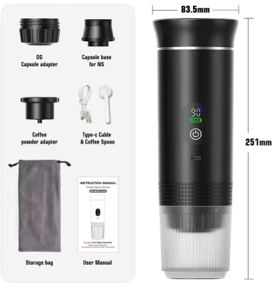 Przenośny ekspres do kawy z wyświetlaczem cyfrowym – Twoja ulubiona kawa zawsze pod ręką!